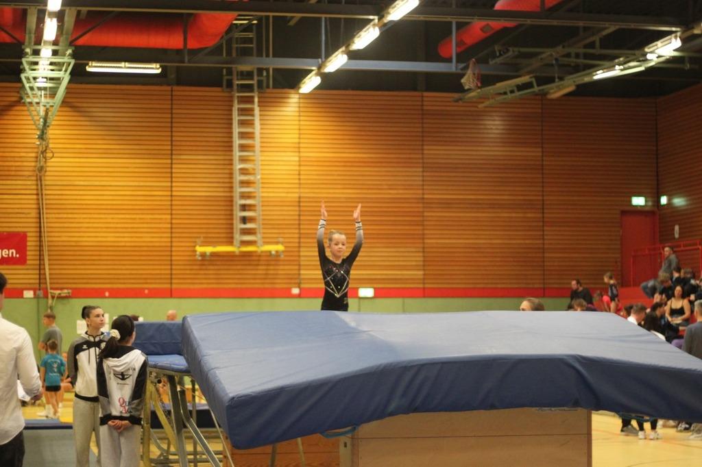 Den Start machte Leonie in der Gruppe der Anfängerinnen. Ihre schönen Sitzsprünge wurden mit dem ersten Platz belohnt.