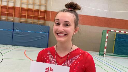 Trotz Sturz am Balken kann Luisa Tetzlaff den Wettkampf im Jahrgang 2009 mit einem