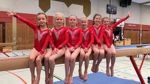 Johanna Gomann (Klasse acht und neun Jahre) erturnte sich Platz vier, knapp an der Medaille vorbei. Dennoch freut sie sich über das Topergebnis. Platz sechs für Louise Heuser und Platz elf für Miriam Scheef sorgte für strahlende Gesichter bei den Turnerinnen.
