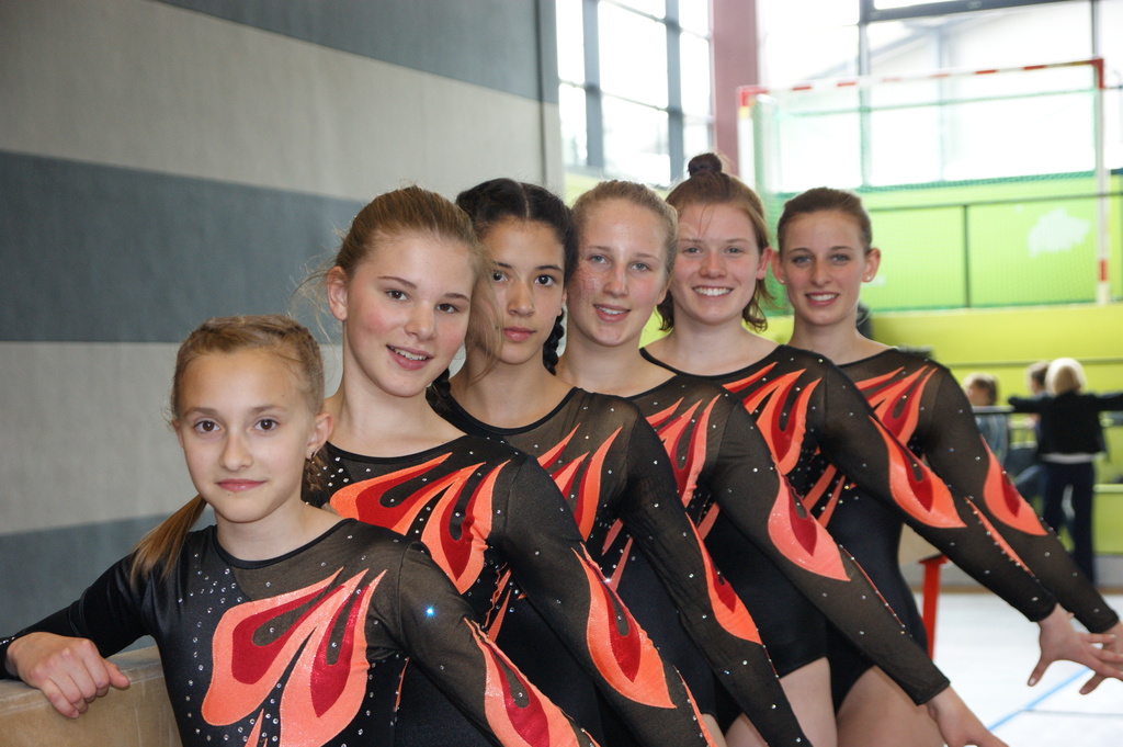 Die Turnerinnen aus Brauweiler Amelie Heim, Julia Plath, Emma Menzel, Jessica Greis sowie Dina Sadowski, Maria Hennies, Julia Stolzis und Sabina Kiendzinski zauberten schönen Wettkampfsport aufs Parkett. Nur Sabina turnte an allen vier Geräten und erreichte 49,85 Punkte. Die weiteren Mädchen turnten nicht jedes Gerät, so dass ein Vergleich nicht gezogen werden kann.