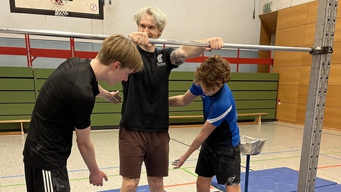 Das wiederholte Trainieren von Grundtechniken zu Beginn einer Stunde führt bei allen Übenden zu individuellen Erfolgen. Je Entwicklung und Dynamik können auch Themen aus dem Schulunterricht („Sportabzeichen“) oder spezielle Elemente erlernt werden, wie sie beim Eignungstest an der Sporthochschule gefordert werden. Wer mit den Hausaufgaben noch nicht pünktlich fertig ist, darf auch gerne dienstags zeitlich „gleiten“… mehr darüber im Kurs!!
