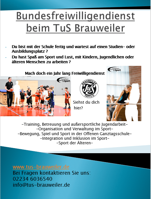 Bundesfreiwilligendienst oder freiwilliges soziales Jahr beim TuS Brauweiler